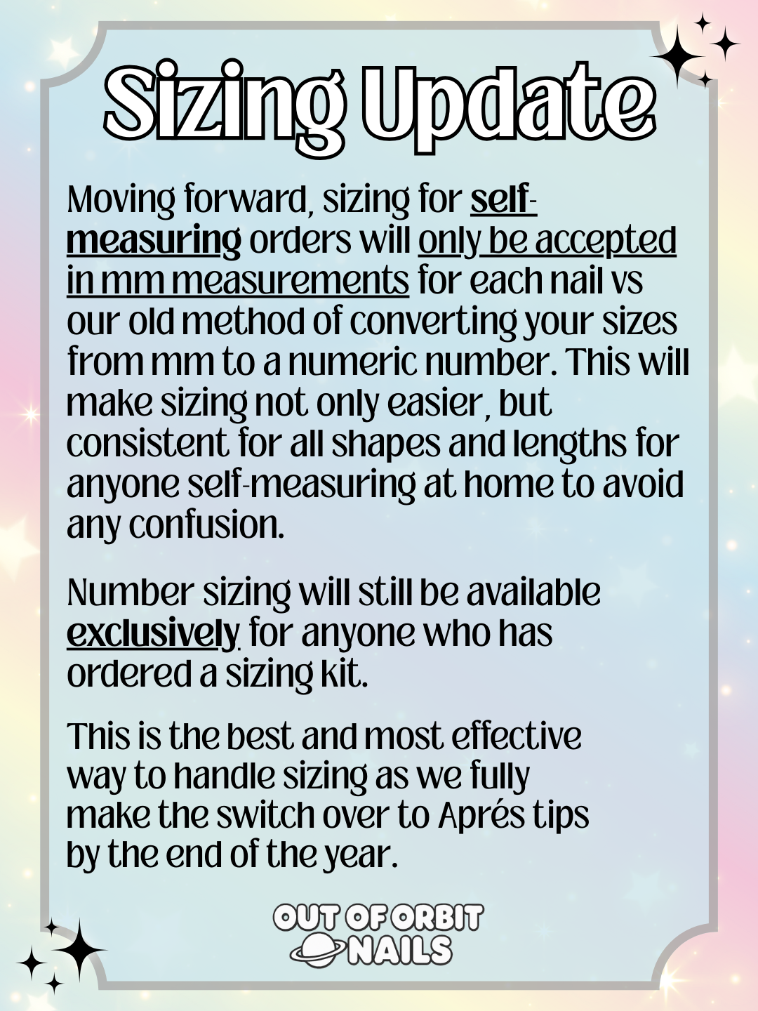 We have changed the way we accept sizes for orders! Please click below for more detailed information regarding sizing.