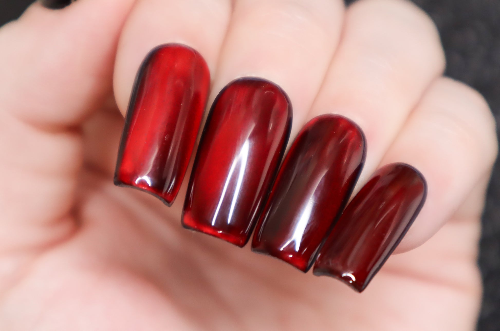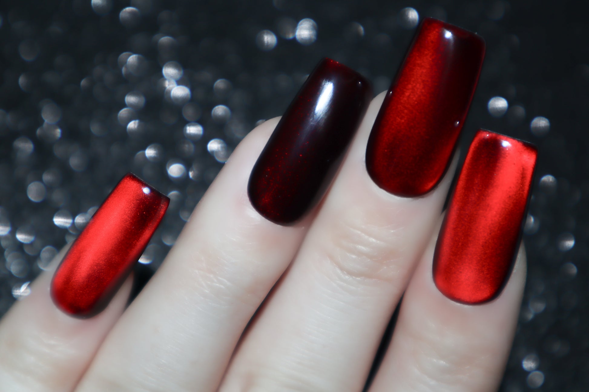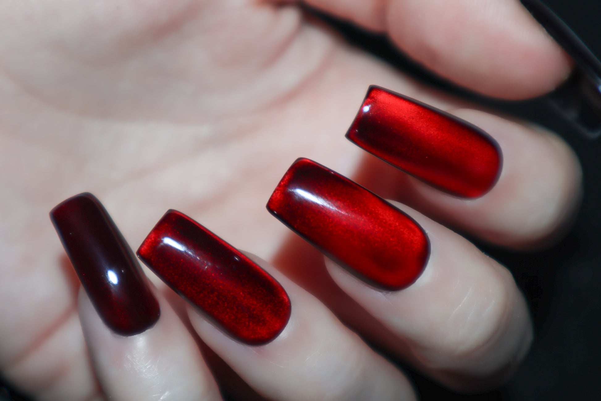 Color Palette: oxblood red, black, & silver cat eye.