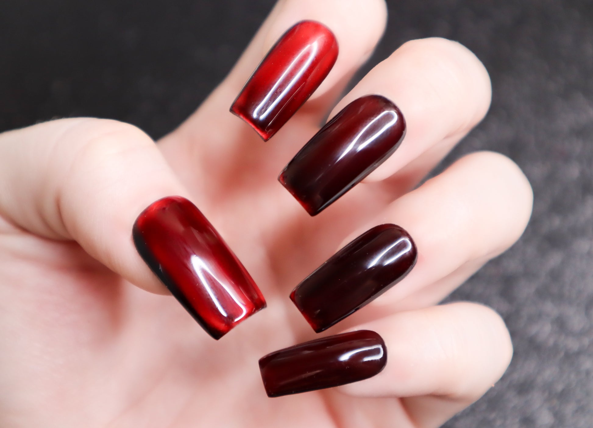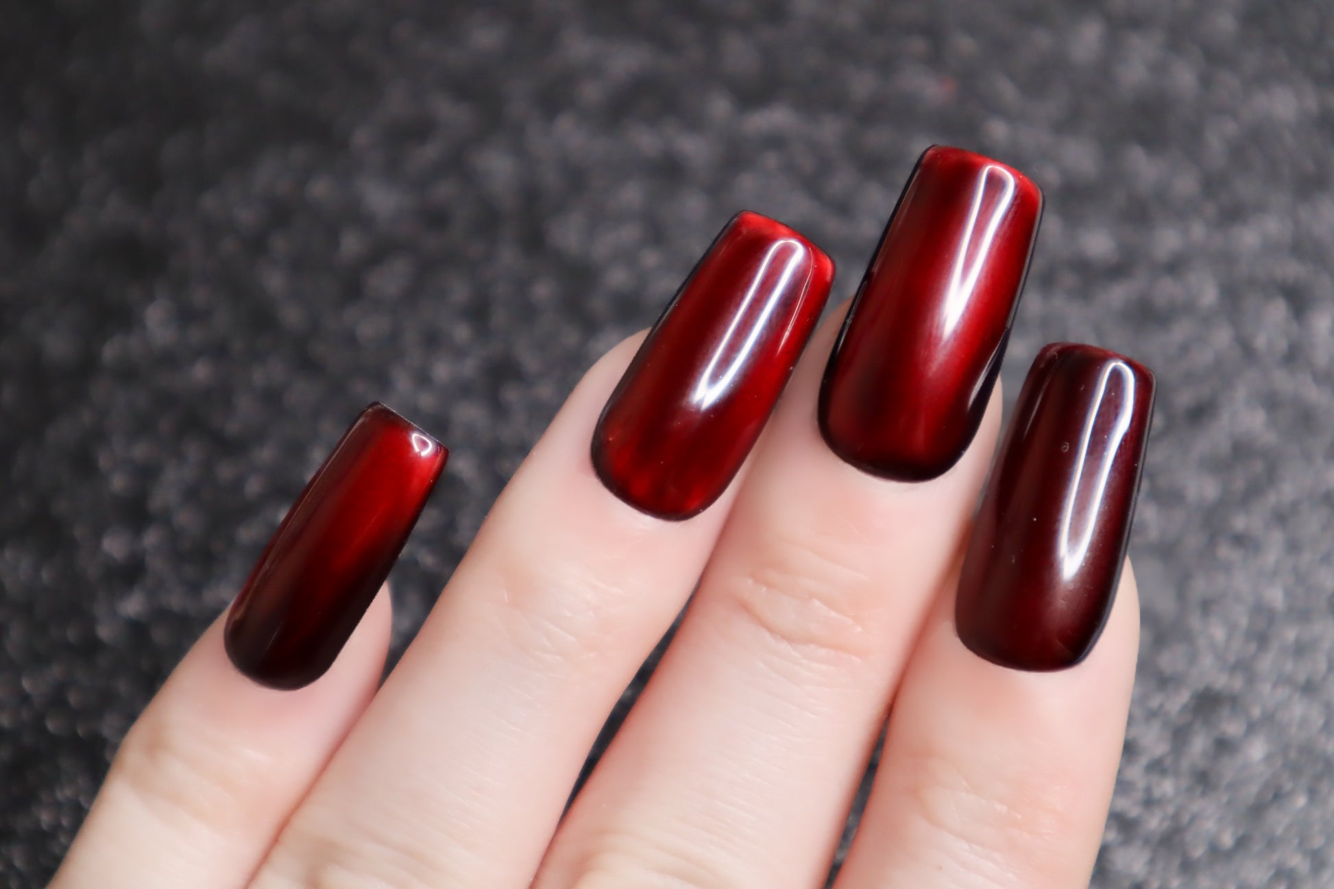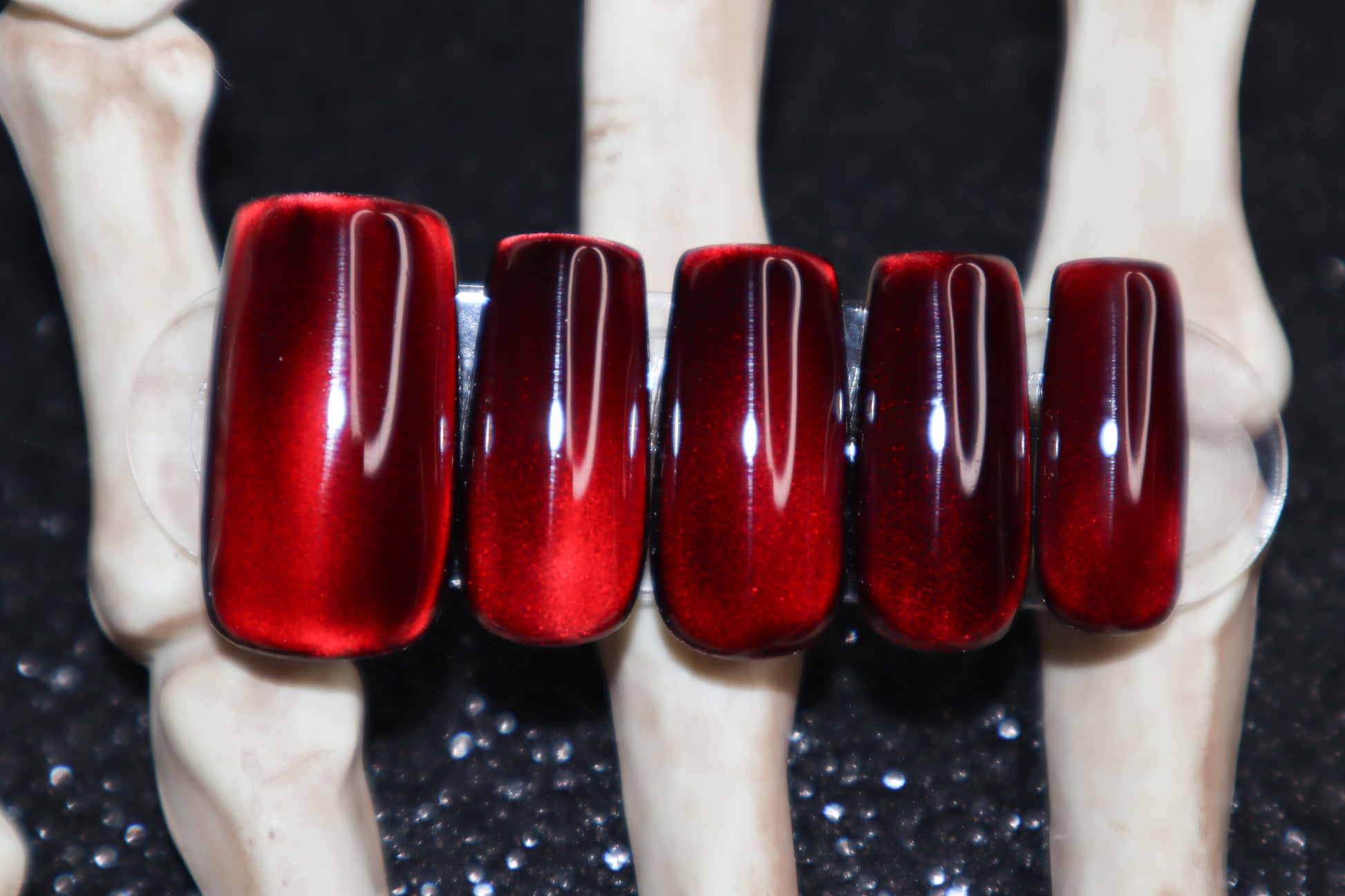 Design Features: Solid layered silky "moonlight" cat eye design. This set looks great in all different types of lighting (especially sunlight), and the cat eye will "dance" & shift when moving your hands! This color way is deeper and more subtle than candy apple.