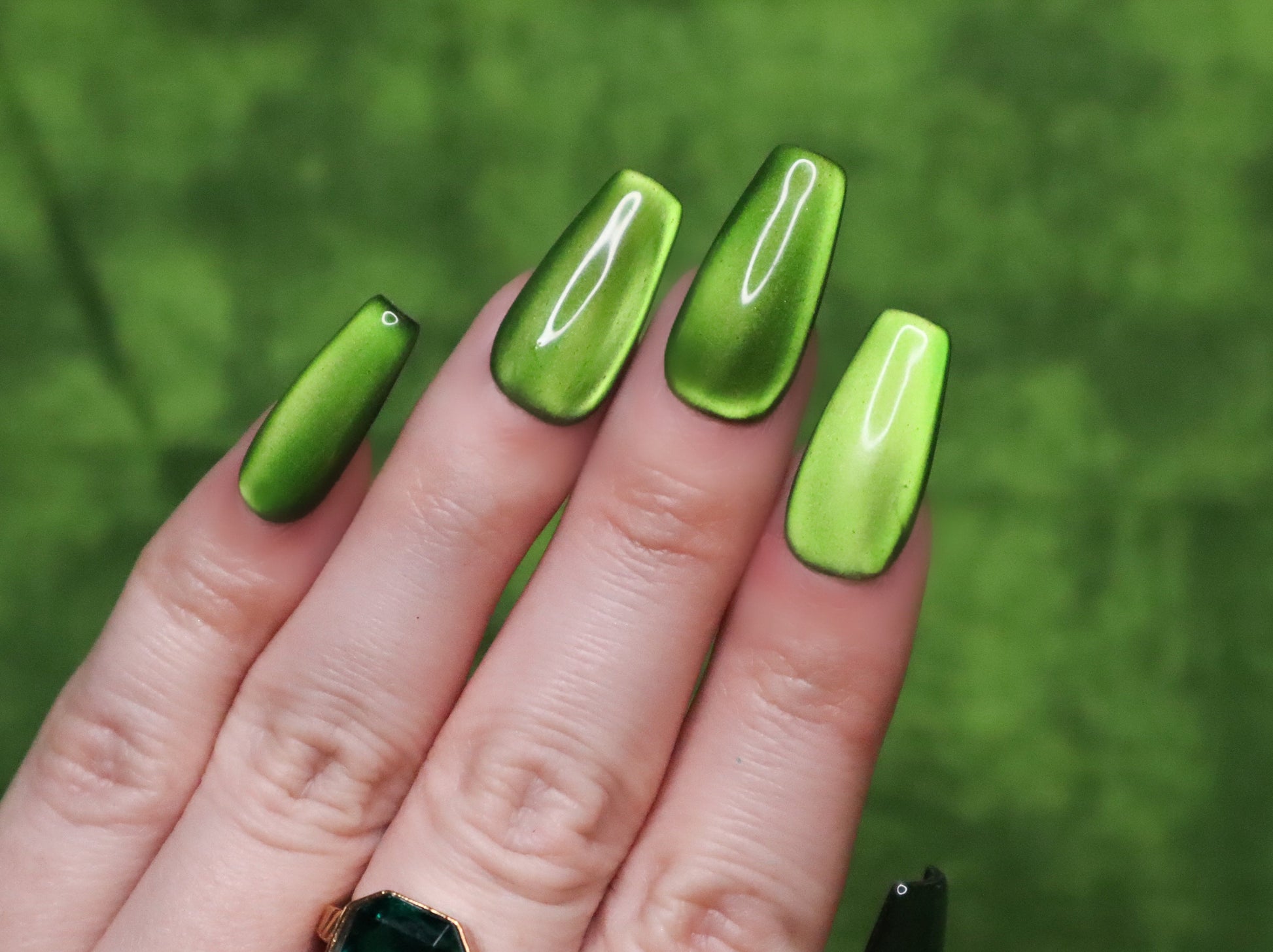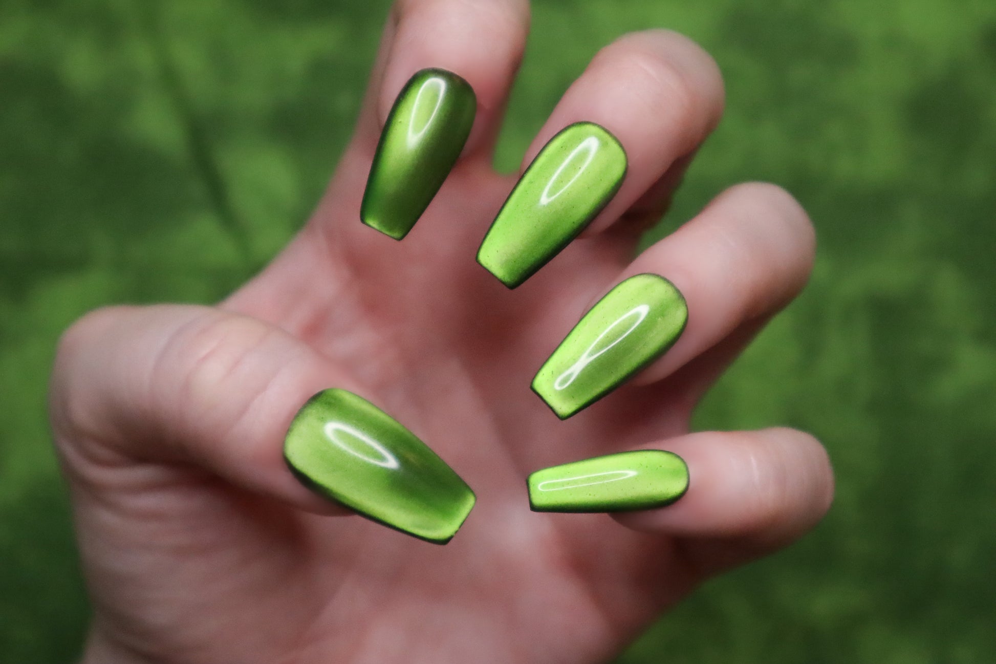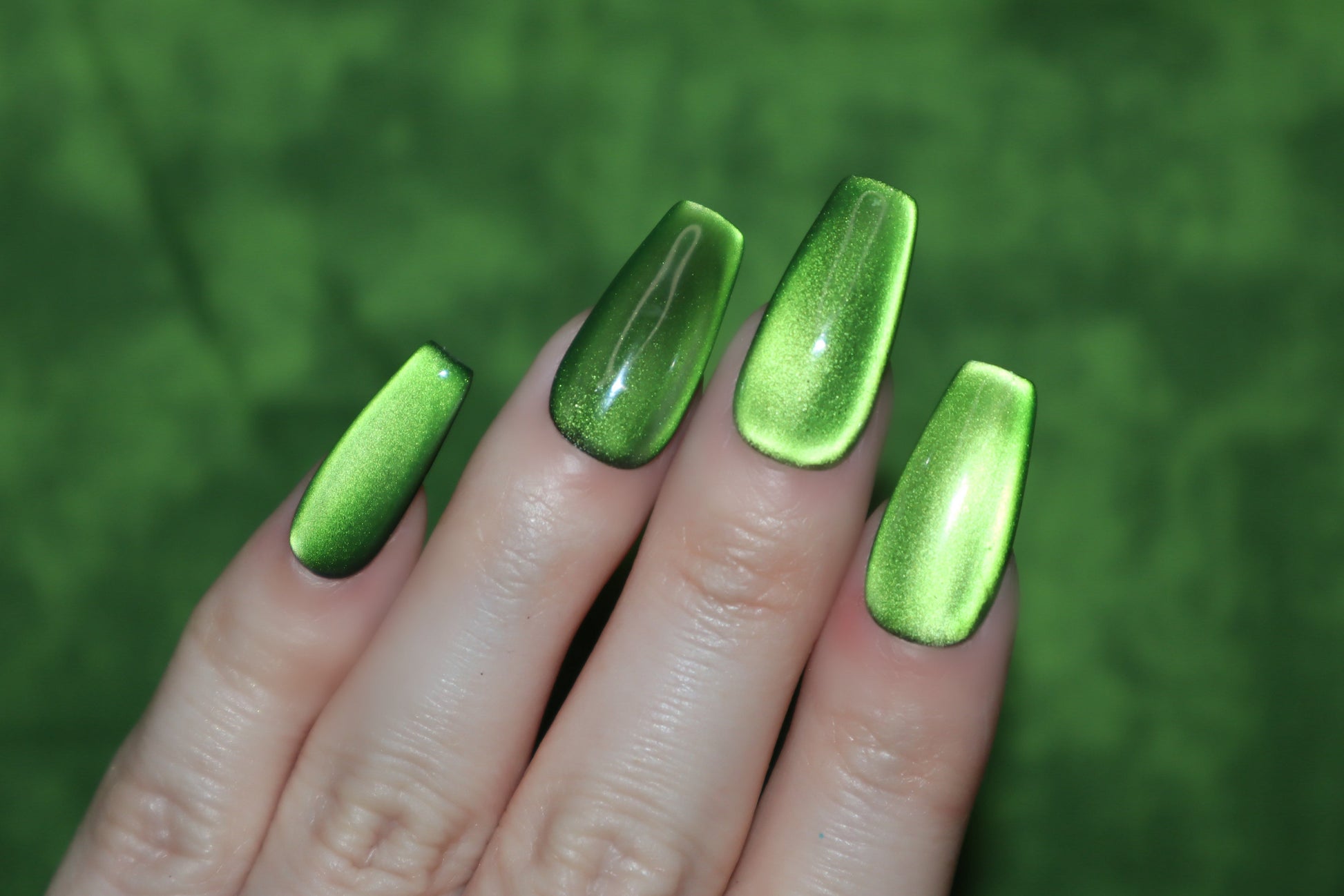 Design Features: Solid layered silky "moonlight" cat eye design. This set looks great in all different types of lighting (especially sunlight), and the cat eye will "dance" & shift when moving your hands!